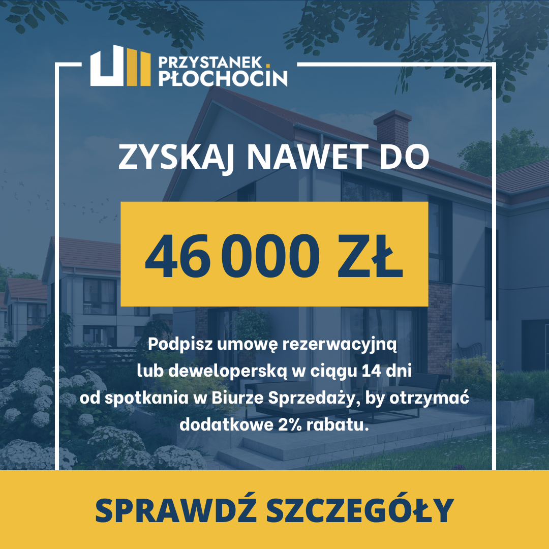 Przystanek Płochocin to domy o wyjątkowej architekturze, w których kładziemy nacisk na funkcjonalność i elastyczność przestrzeni. Wykonane i wyposażone z dbałością o niskie koszty utrzymania oraz trwałość w użytkowaniu. Domy z ogrodem, otoczone naturą w spokojnej okolicy, ale blisko Warszawy, z bardzo dobrym dojazdem do centrum.